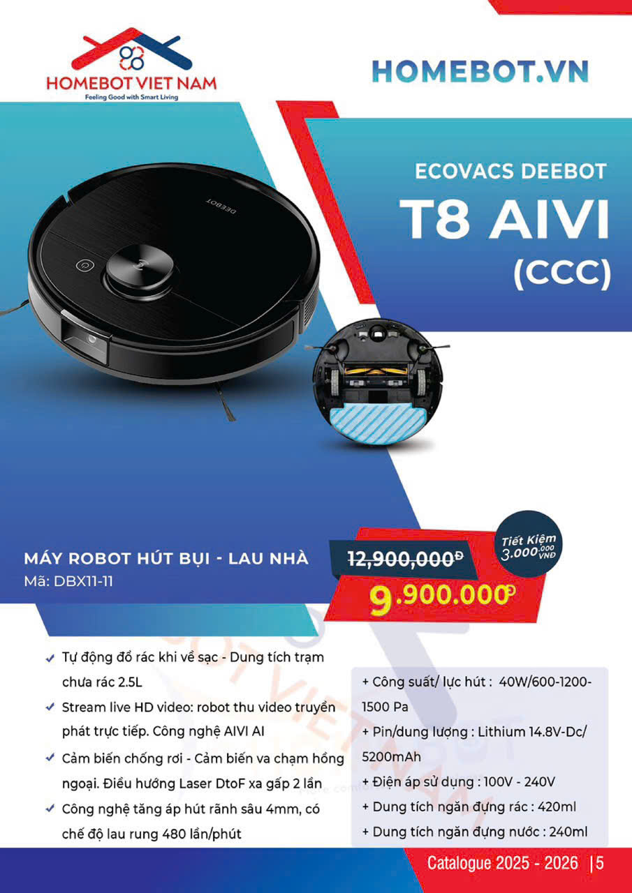 ROBOT HÚT BỤI LAU NHÀ ECOVACS DEEBOT T8 AIVI (CCC) (1)